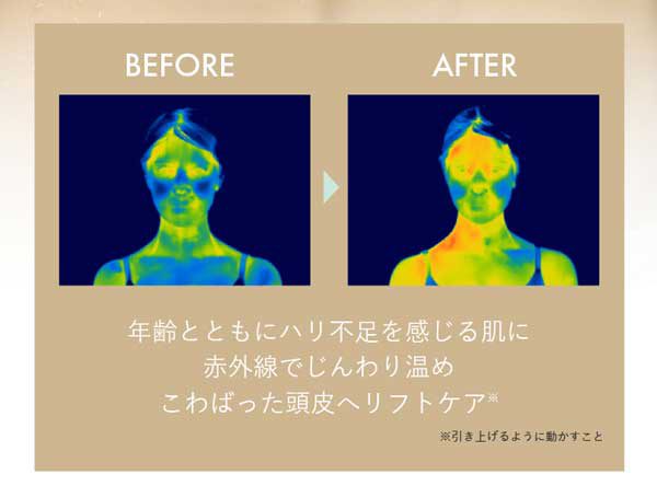 赤外線搭載で、深部※をじんわり温めながら頭皮をほぐします。温熱ケアが、毛髪を作り出す細胞の活性化にもアプローチ。将来の美髪ケアにも繋がります。肩や首にご使用いただく際にも、温熱による血流促進で、凝りほぐしに効果が期待できます。