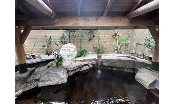 ①男女露天エリアで、温泉の肌科学分析「美肌温泉認証」の結果に基づいた入浴法やスキンケアを紹介
