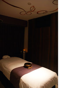 カウンセリングで自分のドーシャがVataと判明した記者。Vataラインのボディケアを体験することにした。スンダリ冬のスペシャルプラン(2月末まで)はスンダリスパを手軽に体験できるお得なプラン。トリートメントの際に流れる音楽もドーシャに合わせセレクトし、そして今回案内されたのはVataの部屋。フットバスを受けながらドーシャに合わせたリラクゼーション効果のある呼吸法を教えていただき、どんどん気分がほぐれていく。