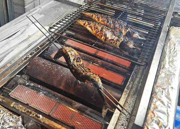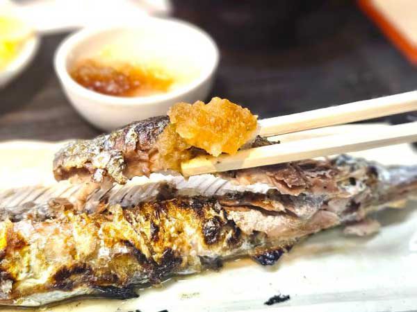 サンマは店頭で焼いて提供してくれます。長さがあり、ぷっくりと厚みのあるサンマに驚きです。焼いているスタッフさんにお話を伺ったところ、「今年は、身も大きく脂がのった上質のサンマがたくさん漁獲されています。身がプリッとしているので、串焼きの串がサンマに入りにくいほど。でもそれが新鮮な証拠よ」と教えてくれました。