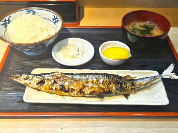 早速、焼きサンマを定食で注文しました。この日の価格は1500円です。入荷によって価格が変更することがあるとのことです。