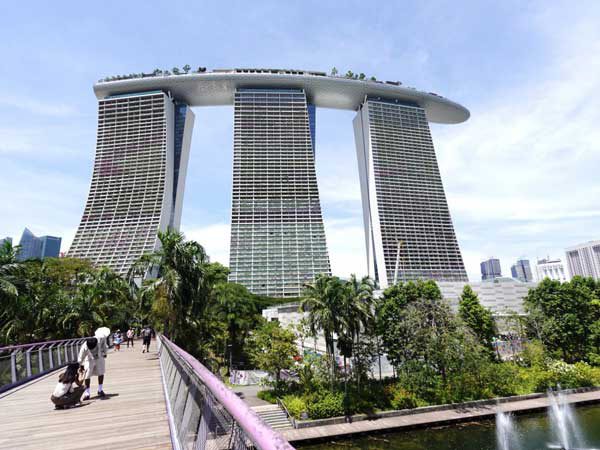また、心の癒しにぴったりなのが、3つの棟からなる巨大ホテルの「マリーナ・ベイ・サンズ」で行われているヨガやセラピーのプログラムで、なんとあの船の形をした屋上の部分で体験できるのです。
