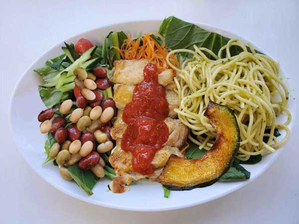 ボリューム満点!ジェノベーゼパスタと人気のミックスビーンズ