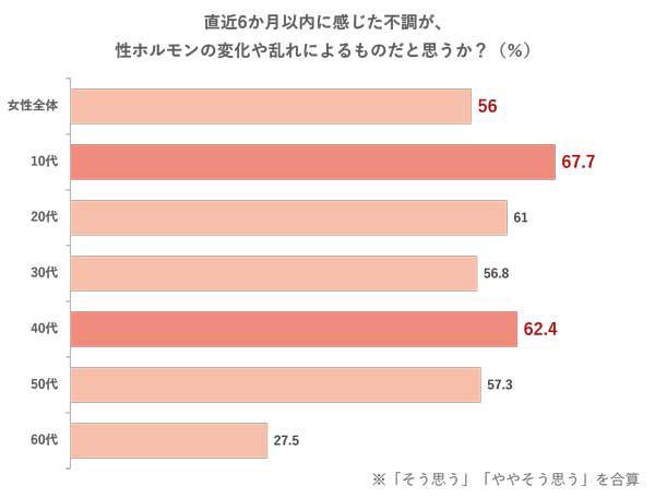 ①【女性のホルモンバランス】女性の半数以上が「性ホルモンの変化や乱れ」による不調を経験。