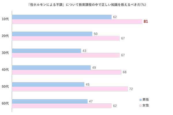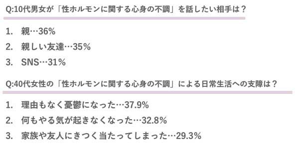 思春期や更年期が起こりやすい10代と40代が顕著。職場や学校のサポートを求める声も5割超