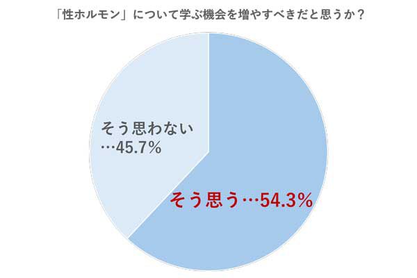 ⑤【不調を理解するために】「性ホルモン」を学ぶ機会を求める声は全体で54.3%、10代で66%。
