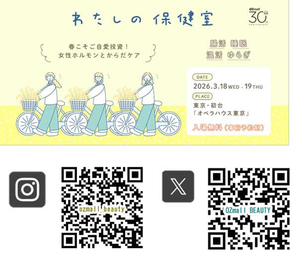 スターツ出版株式会社が運営する「OZmall(オズモール)」(会員数500万人)では、働く女性が自分自身の体と心に向き合い、健やかな毎日を送るためのヒントを提案するイベント「わたしの保健室」を3月18日(水)・19日(木)の2日間、オペラハウス東京にて開催致します。